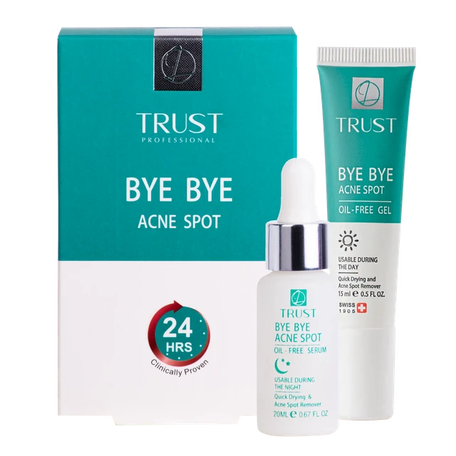 کیت آنتی آکنه فوری تراست با قابلیتهای زیادش به رفع سریع آکنه روی پوست صورت شما کمک میکند. این سرم و ژل، همچنین چربی پوست را با لایهبرداری ملایم در آن ناحیه کاهش میدهند.