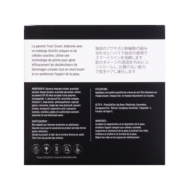 روش مصرف: مقدار مناسبی از کرم شب تراست اسمارت را روی پوست تمیز و شسته شده قرار داده و به آرامی ماساژ دهید و صبح بعد از بیدار شدن صورت خود را بشوئید.