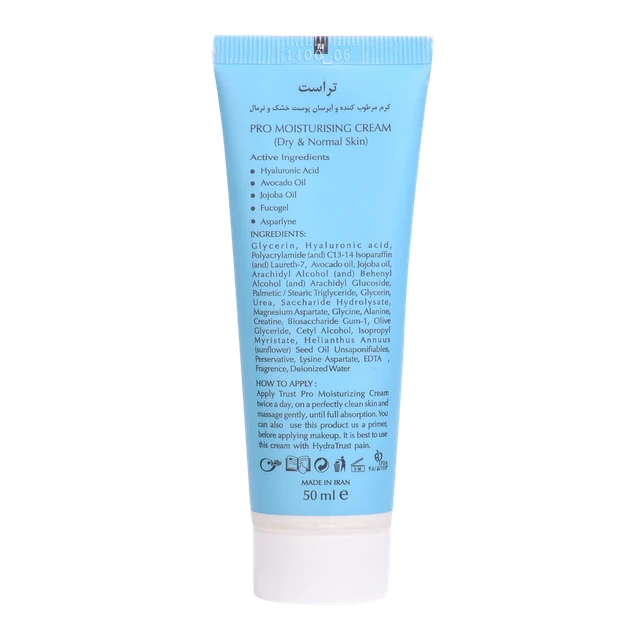 این کرم با برخورداری از مواد موثر منحصربهفرد و زیر نظر دانشگاه لوزان سوئیس تولید میشود. مواد موثری نظیر هیالورونیک اسید، کمپلکس فوکوژل و آسپارلین در کنار استفاده از روغن جوجوبا و آووکادو بصورت کلدپرس (Cold Press)، تاثیر بینظیری روی پوست شما ایجاد خواهد کرد. استفاده از ماده بی نظیرهیالورونیک اسید که از یکی از برترین مواد موثر در آبرسانی محسوب میشود، علاوه بر ایجاد رطوبت مورد نیاز پوست، موجب تاخیر در روند پیری پوست نیز میشود. هیالورونیک اسید موجود در کرم تراست با اتصال به مولکولهای آب روی پوست، موجب تقویت هیدراسیون موثر پوست خواهد شد.