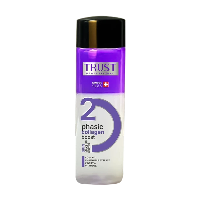 محلول پاککننده آرایش دوفازی تراست، تمام آلودگیها و مواد آرایشی معمولی و ضدآب را از پوستمان پاک کرده و اثری از آنها به جای نمیگذارد. این محصول با وجود ماده مؤثره پروتئین هیدرولیز شده کلاژن از پیری پوست جلوگیری کرده، باعث استحکام پوست و جلوگیری از باز شدن منافذ پوست می شود. محلول دوفازی ضمن پاککنندگی پوست به خاطر داشتن ماده مؤثره آکواکسیل در ساختار خود، پوست را آبرسانی کرده و مانع از تبخیر آب پوستی میشود. همچنین با داشتن عصاره بابونه و ویتامین ای در ترکیباتش از التهابات پوستی جلوگیری کرده، آن را نرم و باطراوت میکند و مانع از آسیب رادیکالهای آزاد به پوست میشود. زینک پی سی ای در فرمولاسیون محصول ترشح سبوم را کنترل کرده، منافذ پوستی را جمع کرده و از ایجاد جوش و آکنه روی پوست جلوگیری میکند. در ضمن عصاره روغن بادام در این محلول دوفازی تراست به آبرسانی، تقویت پوست و پاکسازی کامل مواد آرایشی از روی پوست کمک شایانی میکند.