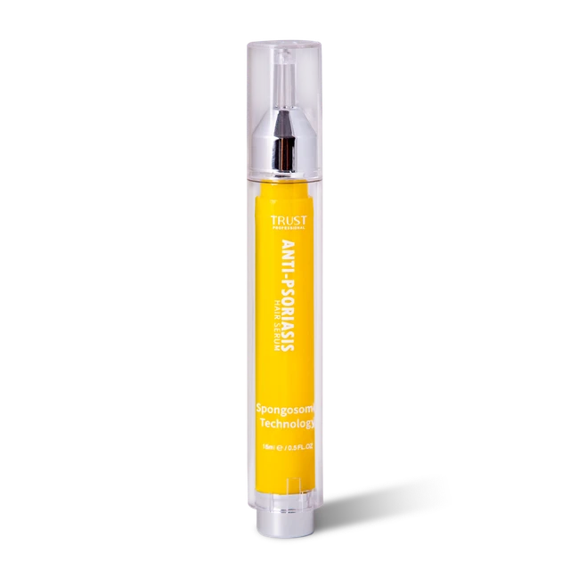 پسوریازیس نوعی بیماری خودایمنی پوستی است که راشها یا پلاکهای پوستی و ضایعاتی را در پوست سر، صورت، زانوها، بازوها و قسمت بالا تنه ایجاد کرده و به عنوان یک بیماری مزمن و بلند مدت شناخته میشود. این پلاکها دردناک هستند و با داشتن یک سیکل مشخص به مدت چند هفته تا چند ماه بروز پیدا کرده و پلاکهایی که رنگ متغیری دارند معمولا به صورت پوستههای صورتی تا قرمز بروز پیدا میکنند. این بیماری با علایم مختلفی مثل خشکی پوست با خونریزی، خارش و سوزش همراه است. پسوریازیس نواحی مختلفی از بدن را درگیر میکند که یکی از مهمترین قسمتها پوست سر و صورت است. شیوع پسوریازیس در پوست سر و صورت منجر به خشکی پوست شده و در نهایت باعث آسیب پوست و شکنندگی و ریزش موها میشود. بنابراین برای کنترل علایم پسوریازیس میبایست از محصولات مراقبتی مناسب استفاده کرد. سرم بهبود دهنده پسوریازیس تراست با بهرهگیری از تکنولوژی اسپانجوزوم به طور موثری به نفوذ و رهاسازی پیوسته ترکیبات لایهبردار و بهبود دهنده ساخت سلولهای جدید در پوست سر و صورت کمک کرده و با بهبود پلاکهای پسوریازیس و کاهش علایم بیماری، سلامت پوست را حفظ میکند. این محصول با دارا بودن ترکیبات موثره آبرسان و ضد التهاب، از خشکی پوست سر و صورت جلوگیری کرده و با مهار واسطههای التهابی، از پیشرفت عارضه جلوگیری کرده و کمک شایانی به بهبود ضایعات پسوریازیس میکند.
