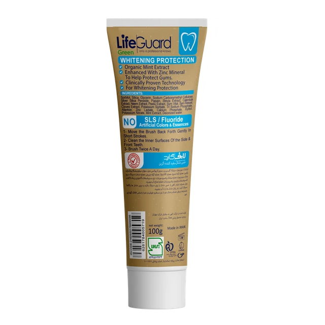 خمیر دندان سفیدکننده گرین برند لایف گارد با حجم 100 گرم