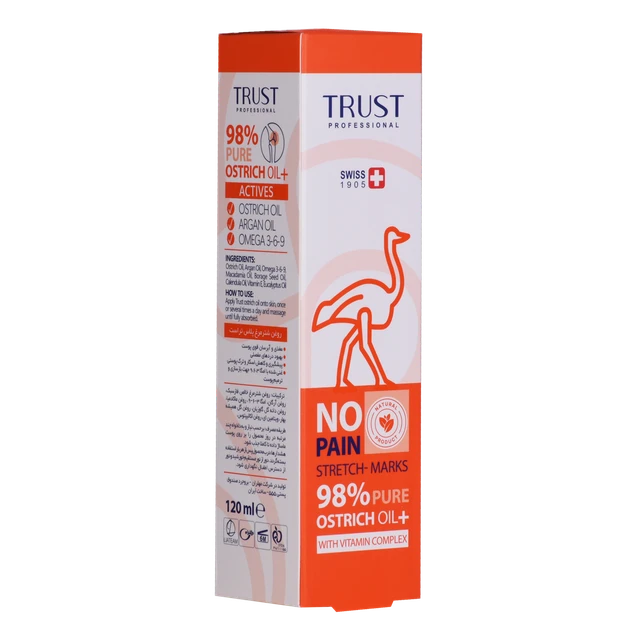 روغن شترمرغ غنی شده تراست برای اولین بار با بهره گیری از فاز سبک روغن شترمرغ بصورت کاملا خالص (خلوص 98 درصدی) در کنار یک کمپلکس ویتامین در کنار روغن کالاندولا و روغن جوجوبا همراه با کره گیاهی (شی باتر) سبب حفاظت از پوست در برابر شرایط سخت محیطی میگردد. روغن شترمرغ غنی از امگا 3 و امگا 6 بوده که در کنار روغن جوجوبا با توانایی نفوذ به لایههای زیرین پوست، علاوه بر بازسازی و بهبود عملکرد پوست موجب آبرسانی طولانیمدت پوست میگردد.