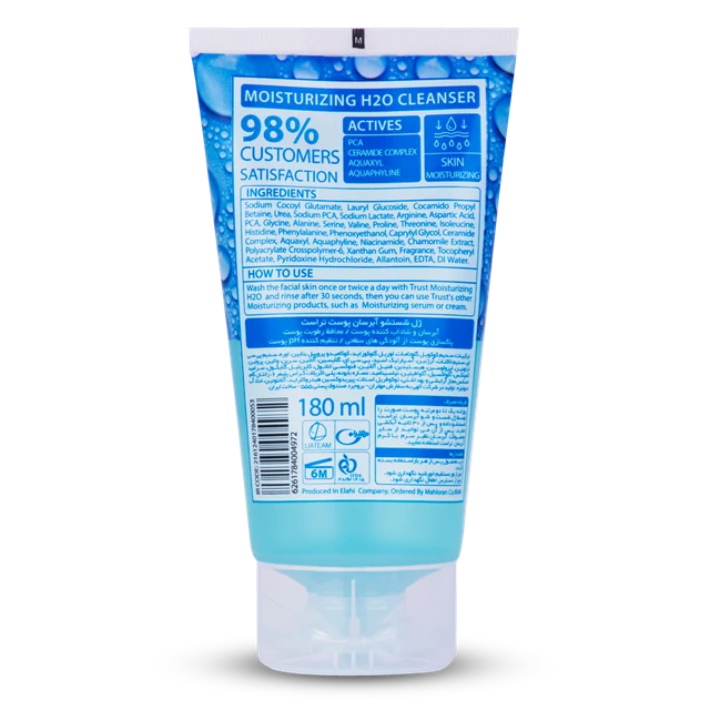 روش مصرف: روزانه یک تا دو مرتبه پوست صورت را توسط ژل شوینده تراست شستشو داده و پس از 30 ثانیه آبکشی نمایید. سپس میتوانید از «کرم آبرسان پوست خشک و نرمال تراست» استفاده کنید.
