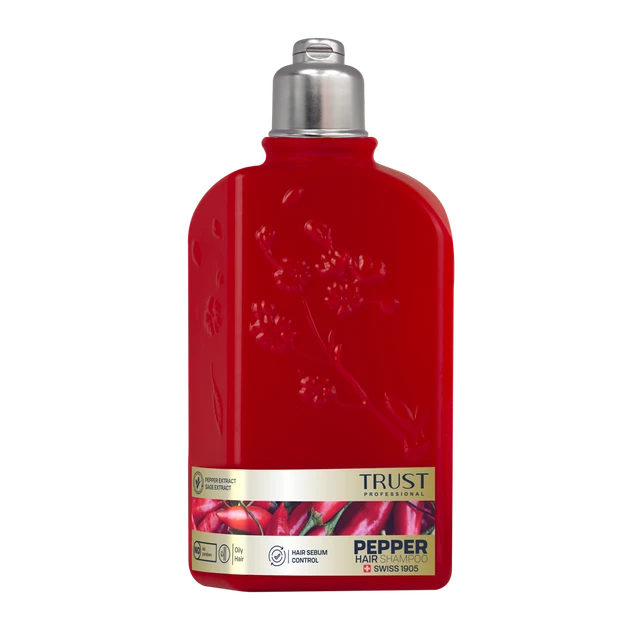 عصاره فلفل موجود در شامپو سر فلفل تراست، با تحریک فولیکولهای مو، به رشد بهتر مو و افزایش سلامت آن کمک میکند. علاوهبراین با افزایش گردش خون در پوست سر، از ریزش تارهای مو پیشگیری میکند. همچنین این محصول با داشتن عصاره مریمگلی در ترکیبات خود، ضمن کنترل چربی پوست، باعث براق شدن مو و رنگپذیری موهای خاکستری و بیرنگ میشود.